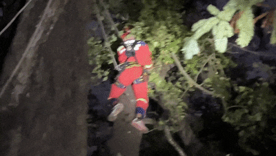 成功将被困男子平稳降至地面